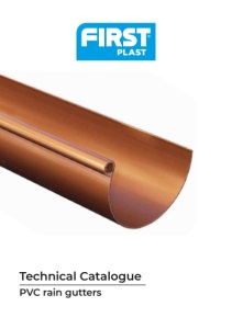 GUTTER SYSTEM COMPONENTS First Plast has been managing the natural water process for 40 years through the creation of dedicated product systems. Water particles that fall under the form of rain are routed from the roof through our gutter channels and downpipes and into the collecting wells to eventually disperse into evacuation networks. Gutters and downpipes are produced through a technologically advanced die-extrusion process. Our various products are available in quite a few colours and come complete with a broad range of accessories to allow full gutter system customisation. GUTTER WITH COPPER EFFECT More than 10 years ago, First Plast introduced CUPRAELITE on the market to confer a copper effect to modern PVC gutter systems and, consequently, making them look very similar to traditional solid-copper components. CUPRAELITE products simulate the colour characteristics and reflections of copper through a PVC "co-extrusion" process that First Plast has developed first in the world. Unlike copper, however, CUPRAELITE is not affected by weather conditions in terms of oxidation or dulling, nor does it suffer fromprice fluctuations as metals usually do. The PVC gutter with CUPRAELITE copper effect is manufactured in the round types with development 25 (GRN125R) or 33 (GRN133R) or with a square profile (BEST). It can be matched with a wide range of accessories and downpipes that supplement functionality of the rainwater drainage system. 11 INTERNAL ANGLE RAIN COLLECTOR PVC SHOCK-RESISTANT DOWNPIPE PVC PIPE-CLIPS DOWNPIPE GUTTER STOPEND RUNNING OUTLET EXPANSION UNION GUTTER PROFILE BEND PVC BRACKET GALVANISED BRACKET EXPANSION UNION ROOF RAFTER TOP FIXING RAFTER STOPEND OUTLET EXTERNAL ANGLE