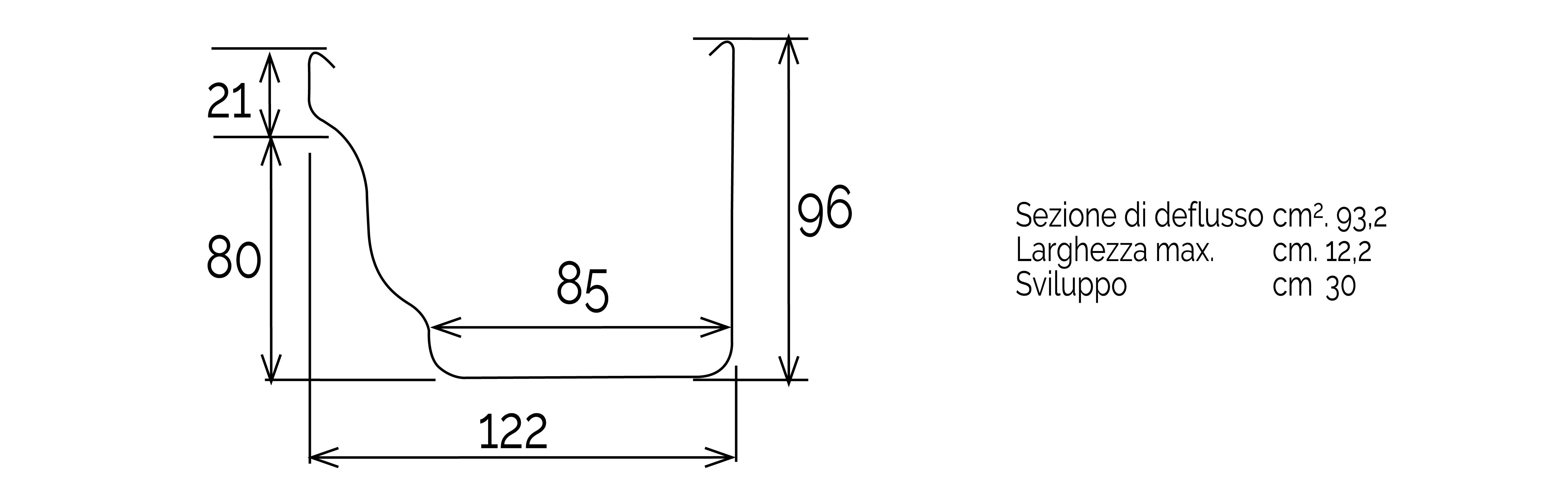| Code | Color | Length mm | Section area of the channel cm² | Max flow rate l/s | ||